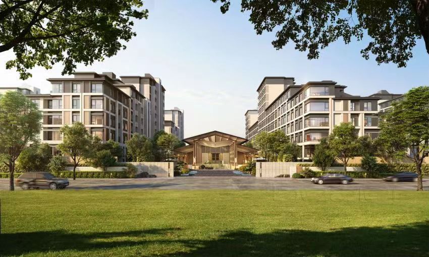 穿过具有烟火气的木头房子,进到社区大堂的门,可以看到用松石点缀的九园九景之一的静心庭院,再往里走,是东庐的精致园林景观。整体景观设计以自然度假为主题,在特别设计的归家景观动线上,业主可以欣赏到樱花道、商业庭院和静心庭院等,满足不同的功能和情感需求。九园九景、四时景致带来的细节构筑了日常生活中的仪式感。